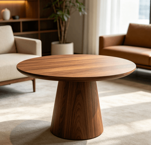 圓形胡桃木洽談小枱(現代極簡風格)