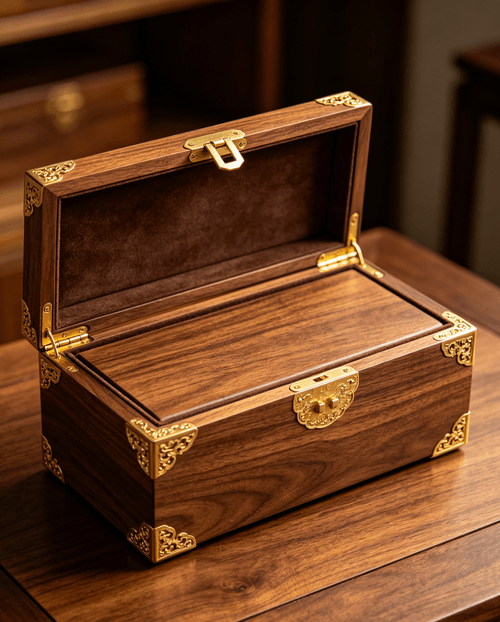 手工胡桃木嵌金飾盒