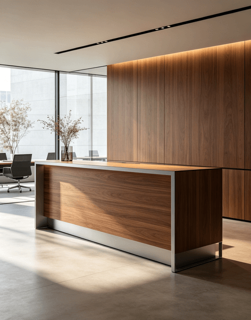 義大利進口胡桃木簡約現代接待櫃檯(實木貼皮+鋼架結構)